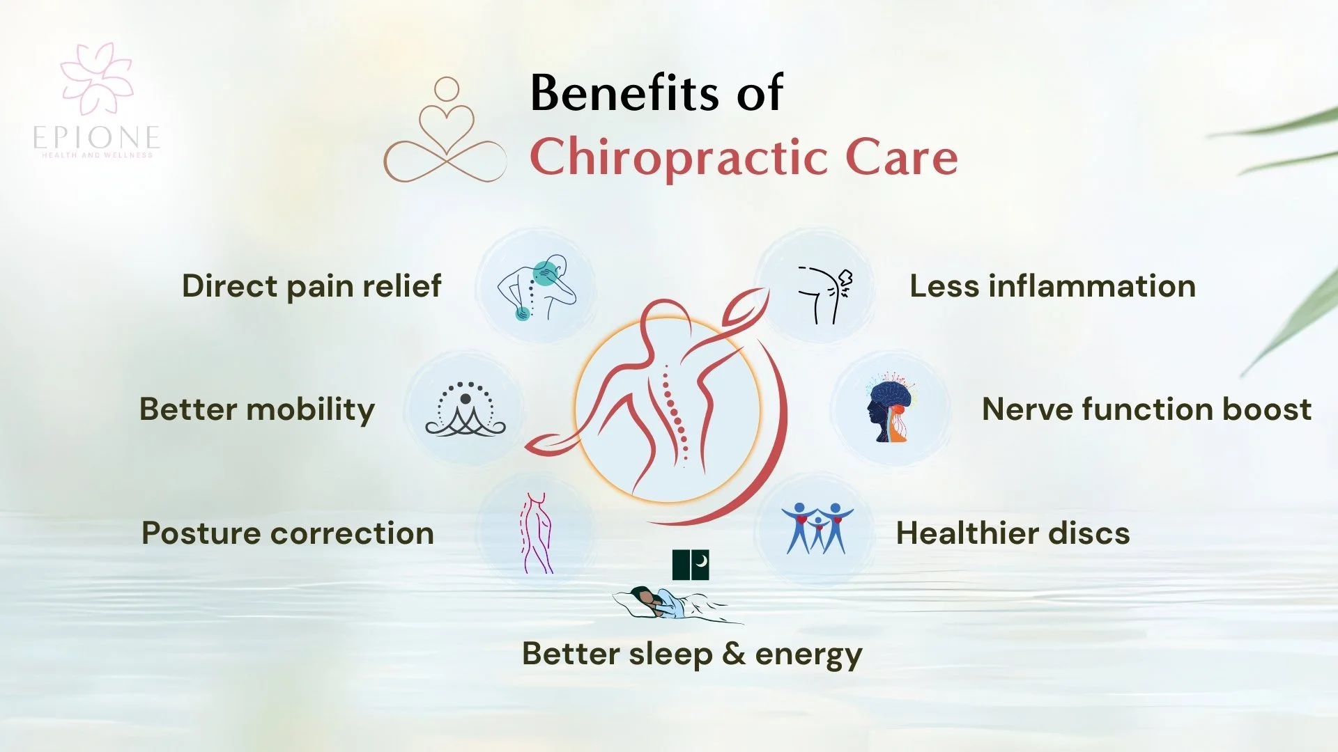 Lower Inflammation: Gentle adjustments reduce inflammation, less swelling = less pain = more comfort.